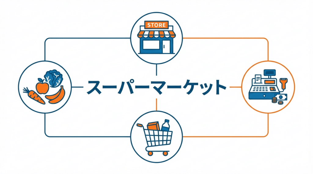 スーパーマーケットとは、食料品を中心にセルフサービス方式で販売する小売業態です。業態の特徴・他業態との違い・DXによる進化をわかりやすく解説します。 -