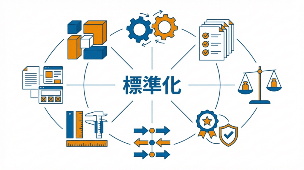 標準化とは、業務手順や店舗運営のルールを統一し、品質とコストの最適化を図る取り組みです。チェーンストア経営の基盤であり、DX推進の前提条件でもあります。 -