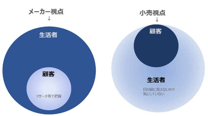 なぜ「消費者」をターゲットとしてきたか 小売に関する「客」を示す単語を並べると、消費者・生活者・顧客・ユーザーとなります。 ECなどネット主体の場合「ユーザー」が多く使われていますが、店舗中心のビジネスでは使用頻度が多くはないので、ここ... -