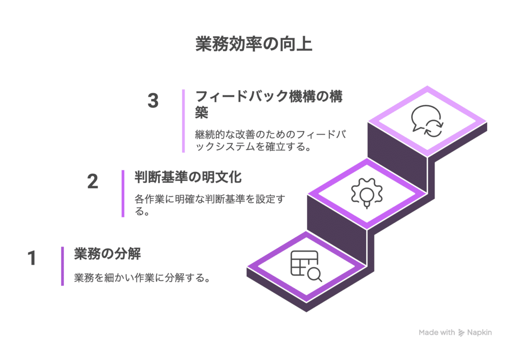 最後に、「業務割り当て」から「作業割り当て」への転換を実践するための3つのステップを整理しましょう。