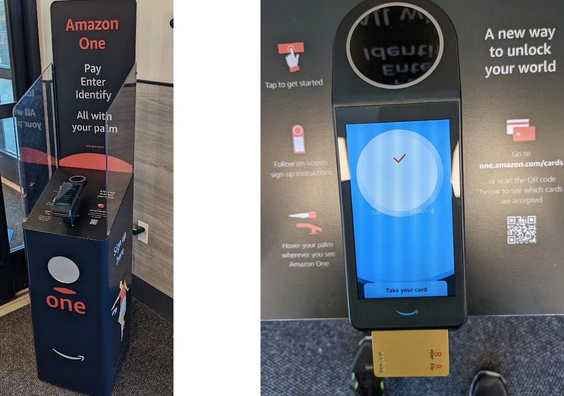 そして、2回目はAmazon Oneに登録して手のひら認証での入店をしてみました。つまり、スマホすら持たずに店舗入店と退店時にゲートに手のひらをかざすだけでかざすだけで入店と決済を終わらせるわけです。
