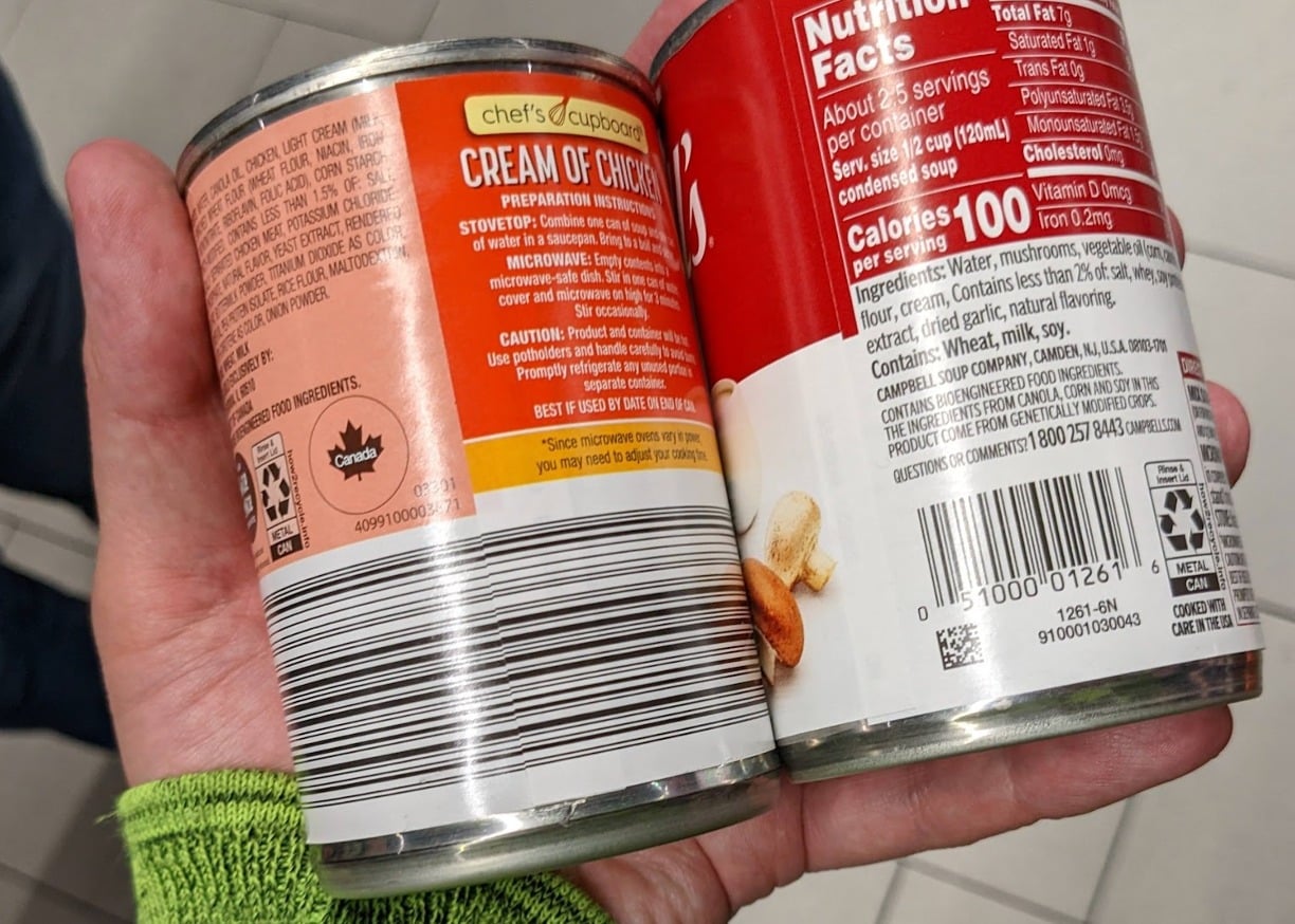 バーコードの特徴は、写真を見れば一目瞭然です。レジで担当者がバーコードの位置を探してスキャンする必要がないように、円筒状の容器はバーコードを一周回るようにパッケージデザインしています。
